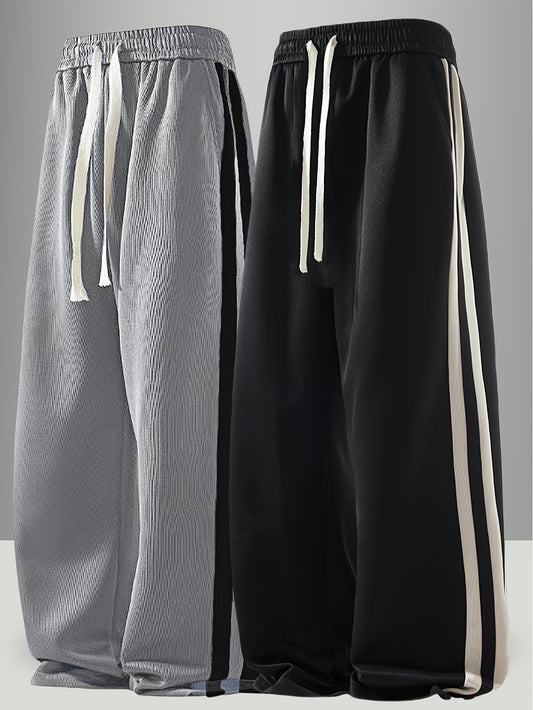Pantalon Large Rayé Lencensa - Unisexe Sport Casual Toutes Saisons