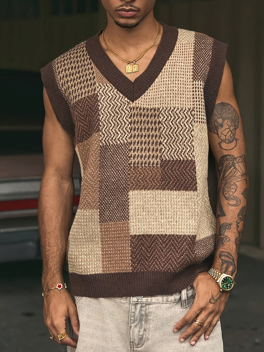 Lencensa - Gilet Homme Col V Tricot Motif Géométrique
