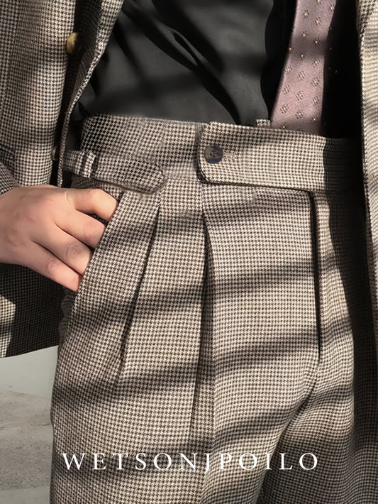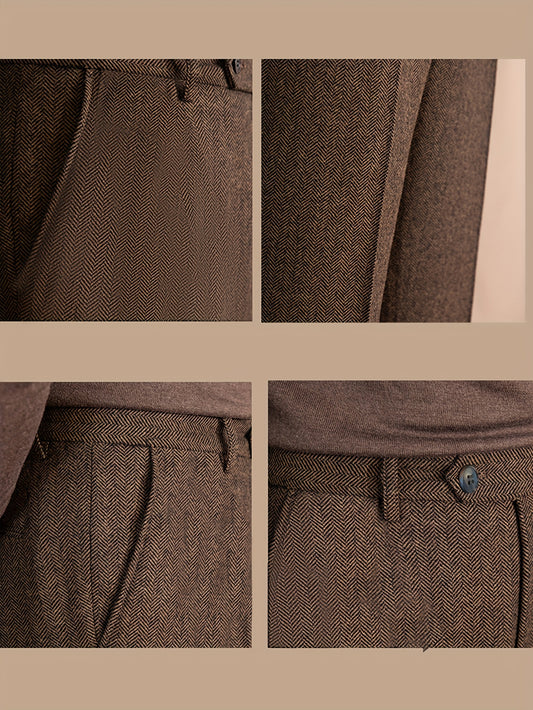 Lencensa - Pantalon Homme Chevrons Marron Coupe Classique