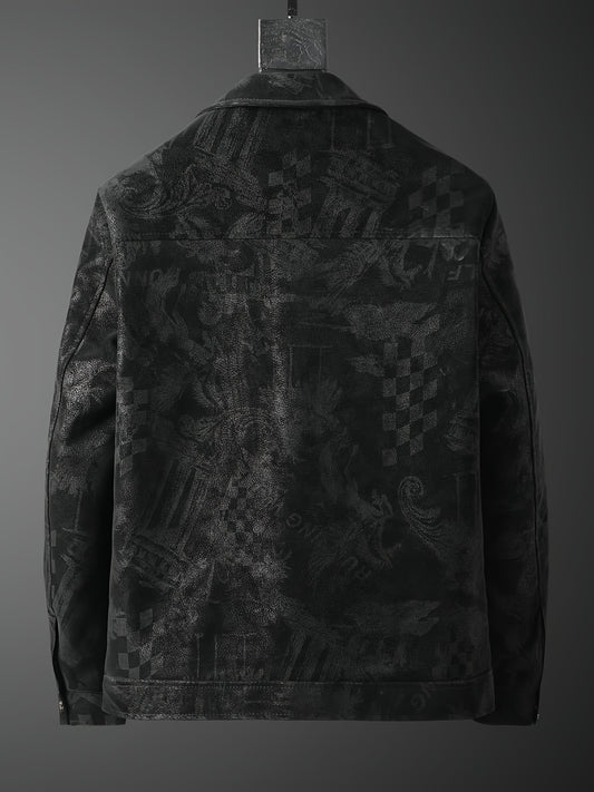 Lencensa - Veste Bomber Homme Noire Motif Imprimé