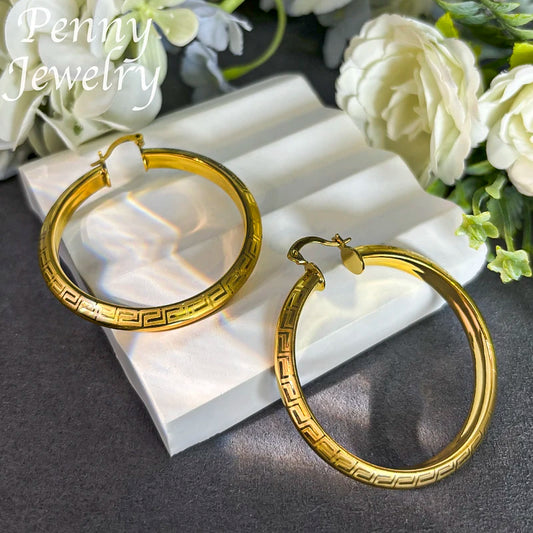 Grand rond plaqué or 18 carats boucles d'oreilles pour femmes cuivre Vintage cercle boucle d'oreille fête cadeaux de mariage ensembles de bijoux africains italiens