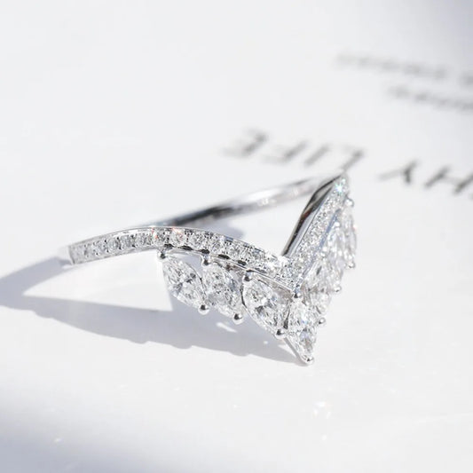 Bague Fiançailles V Or Blanc 18K - Marquise Zircone Empilable