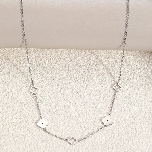 Collier trèfle à quatre feuilles en acier inoxydable pour femmes, Design creux porte-bonheur, chaîne de clavicule Simple à la mode, bijoux cadeaux