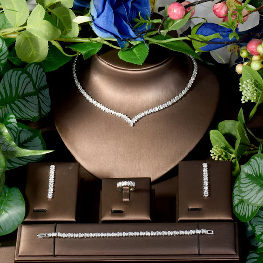 Ensemble Bijoux Luxe 4 Pièces - Collier et Boucles d'Oreilles Zircone