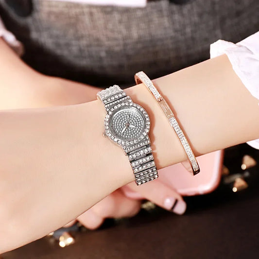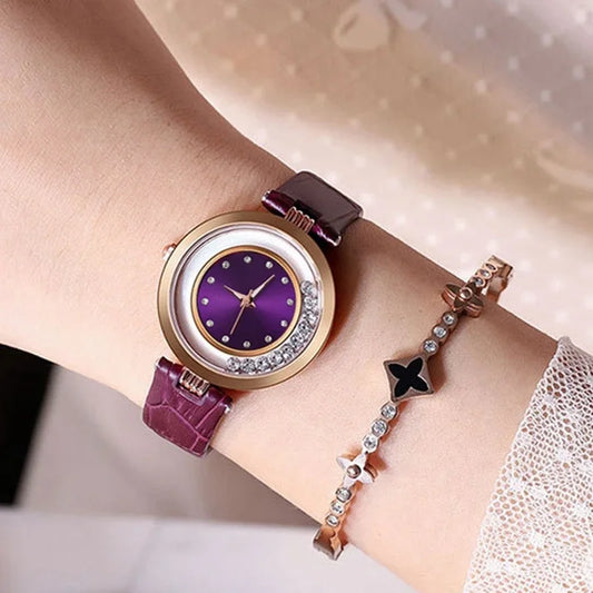 Montre à Quartz Analogique avec Ceinture en Cuir et Diamant pour Femme, Accessoire de Luxe