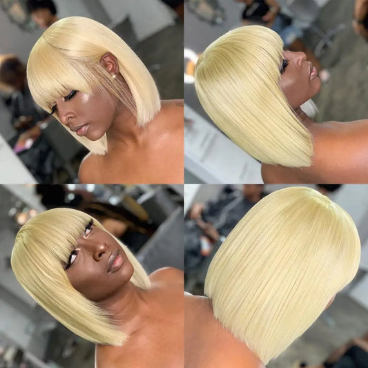 Perruque Bob courte droite avec frange 613 perruques de couleur Blonde 100% perruques de cheveux humains vierges brésiliens 13X4 HD perruque avant de dentelle pour les femmes