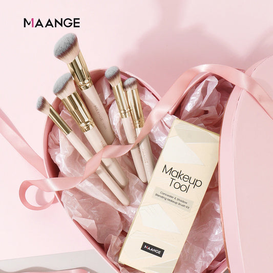 MAANGE 5 pièces pinceaux de maquillage poudre fard à joues brosse fond de teint pinceau de maquillage pinceau de Contour Portable pour voyage cadeau de saint valentin