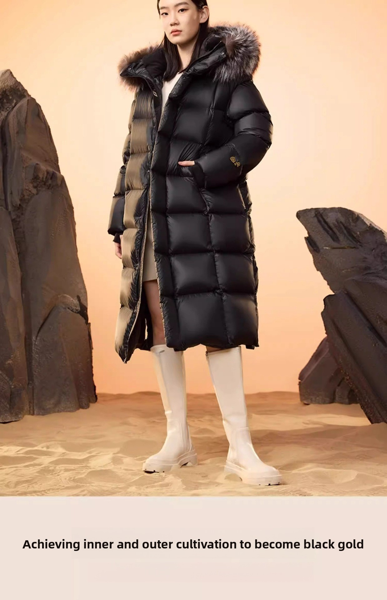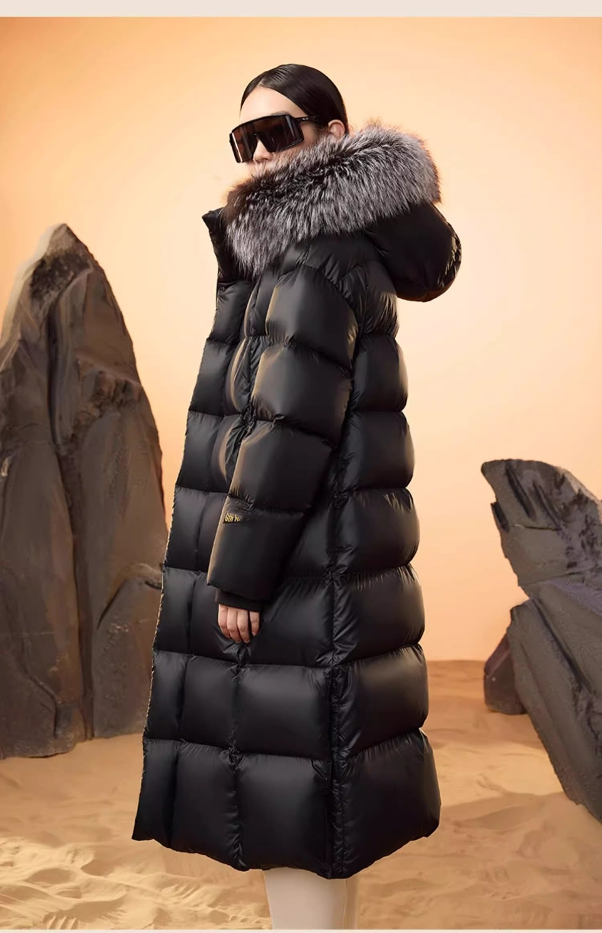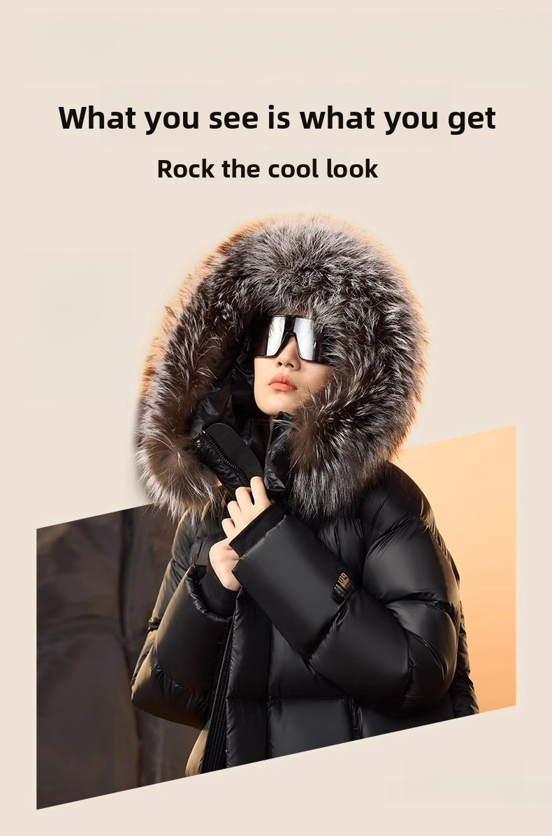 Luxurious Fur Collar: Detachable black gold and silver fox fur collar for an elegant touch.