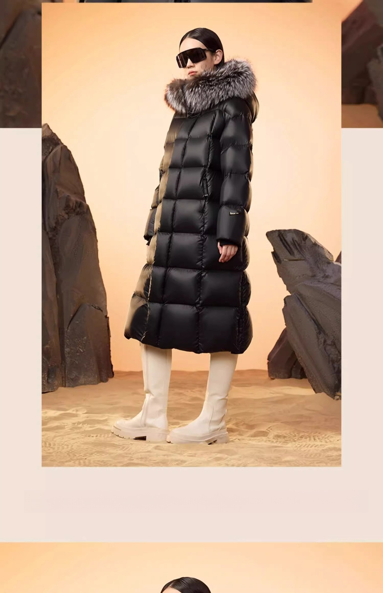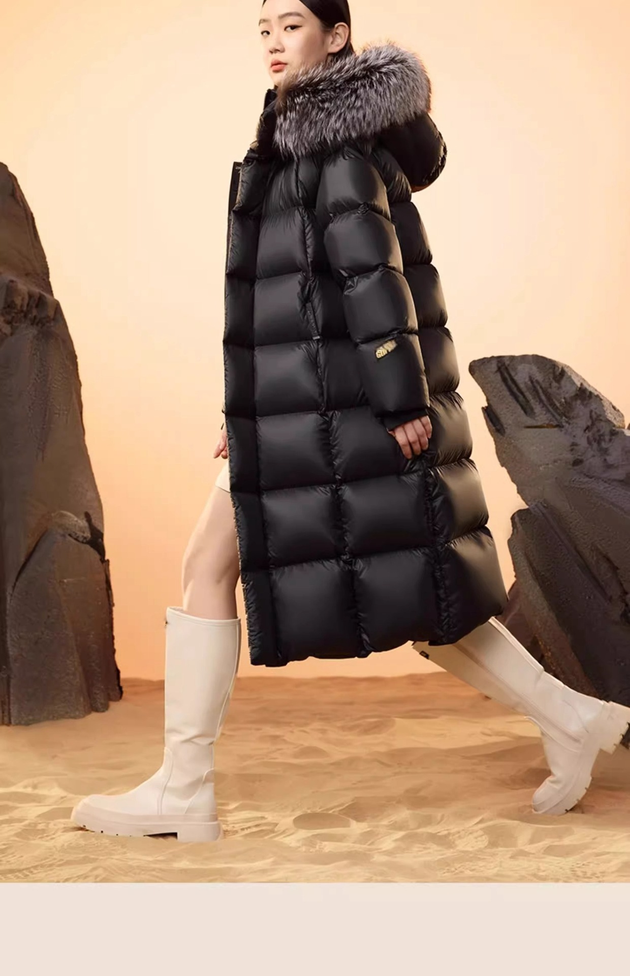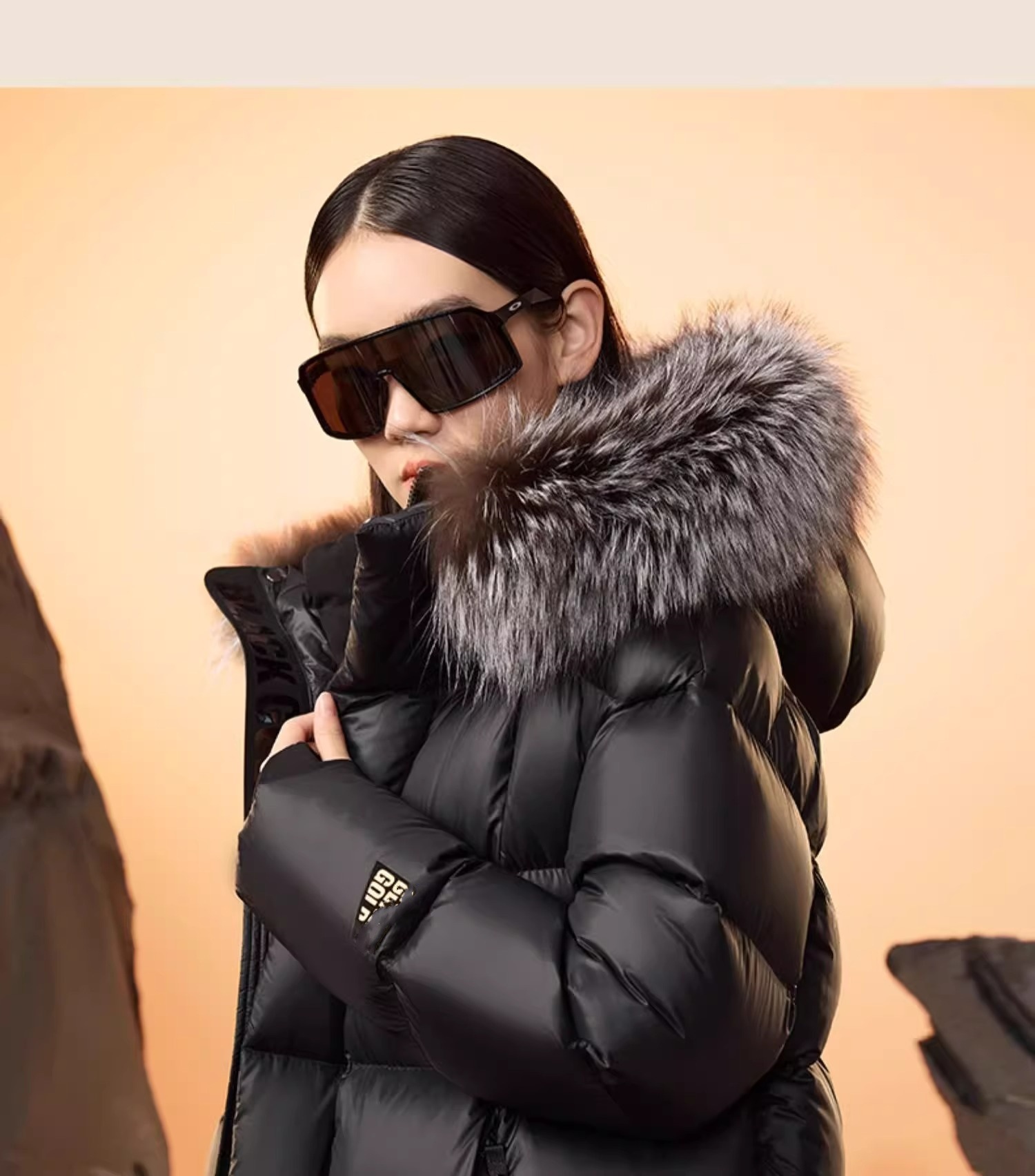 Luxurious Fur Collar: Detachable black gold and silver fox fur collar for an elegant touch.