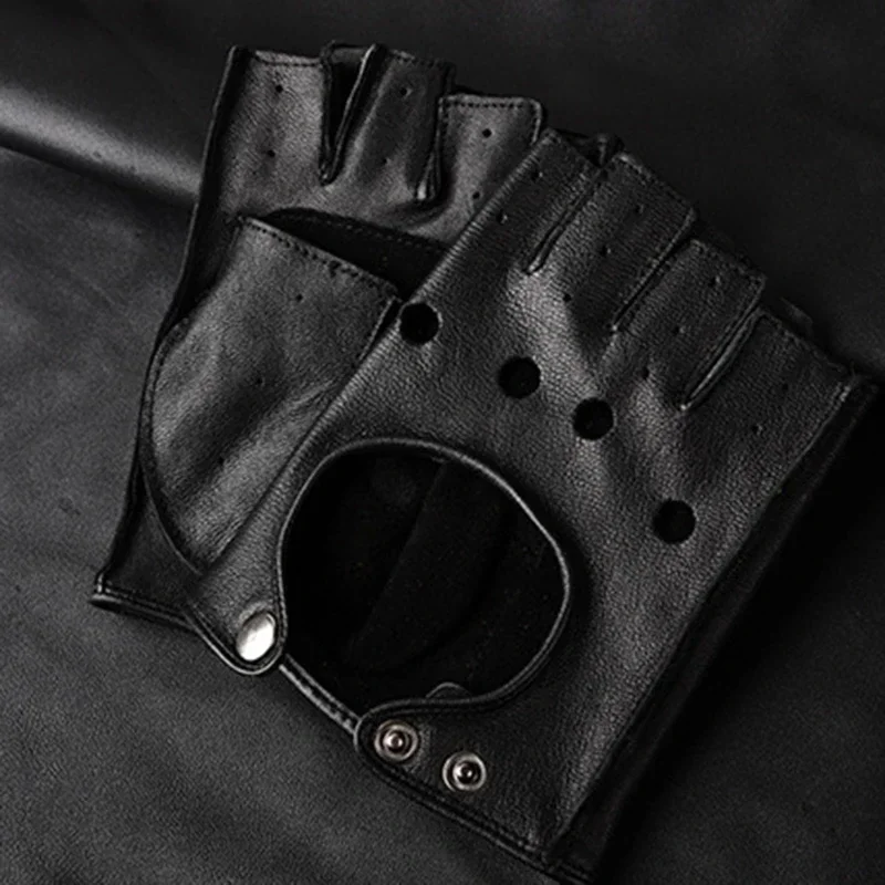 Mens Fingerless Half Finger Driving Fitness Motorcycle Cycling Goatskin NEW Men Pu Leather Gloves Mittens