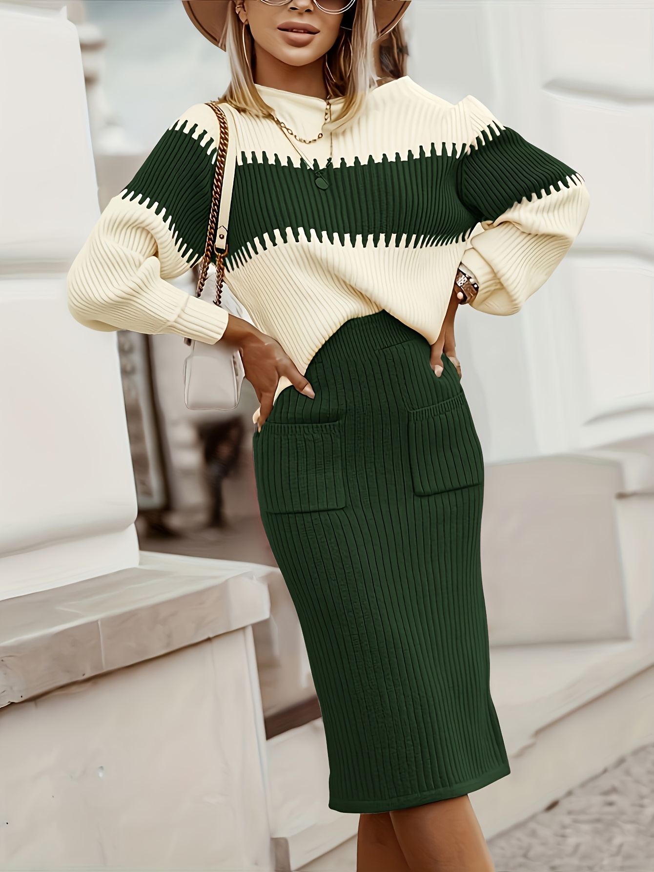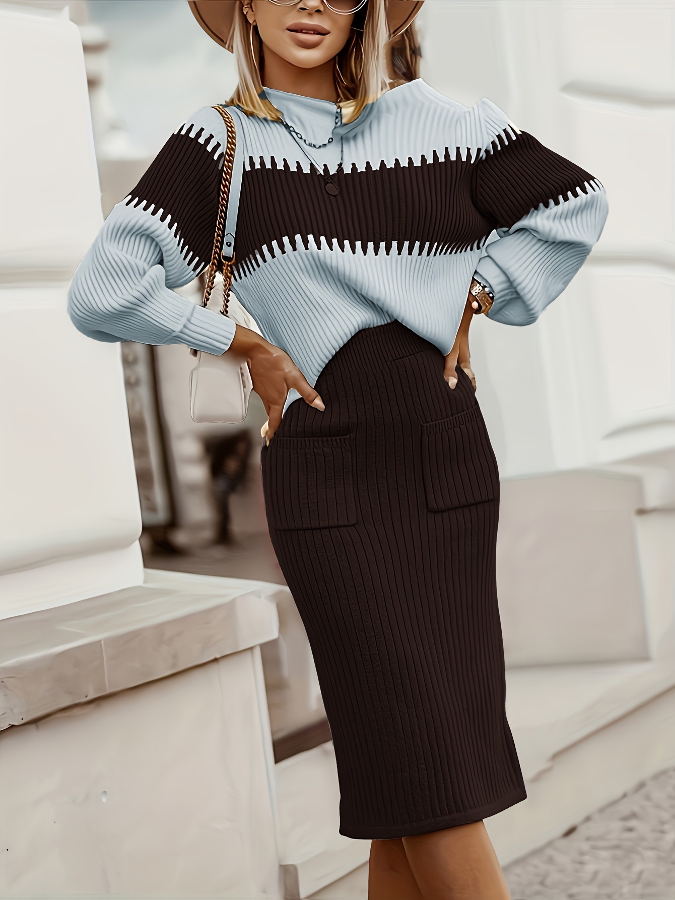 Ensemble Deux Pièces Femme Élégant - Cardigan Manches Longues & Jupe Marron 2025